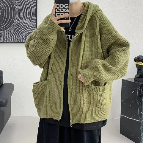 Step into the season with our Men's High Sense New Autumn Cardigan, a perfect blend of style and comfort. This trendy hooded knit cardigan coat is designed to keep you chic and cozy during those crisp autumn days.